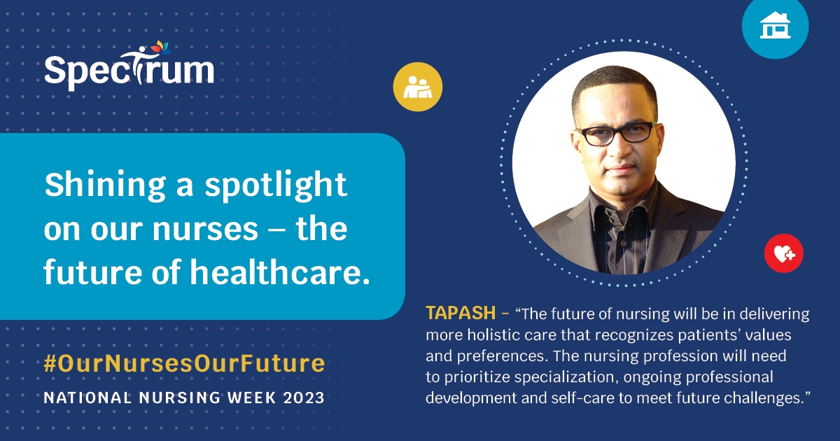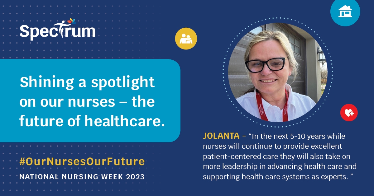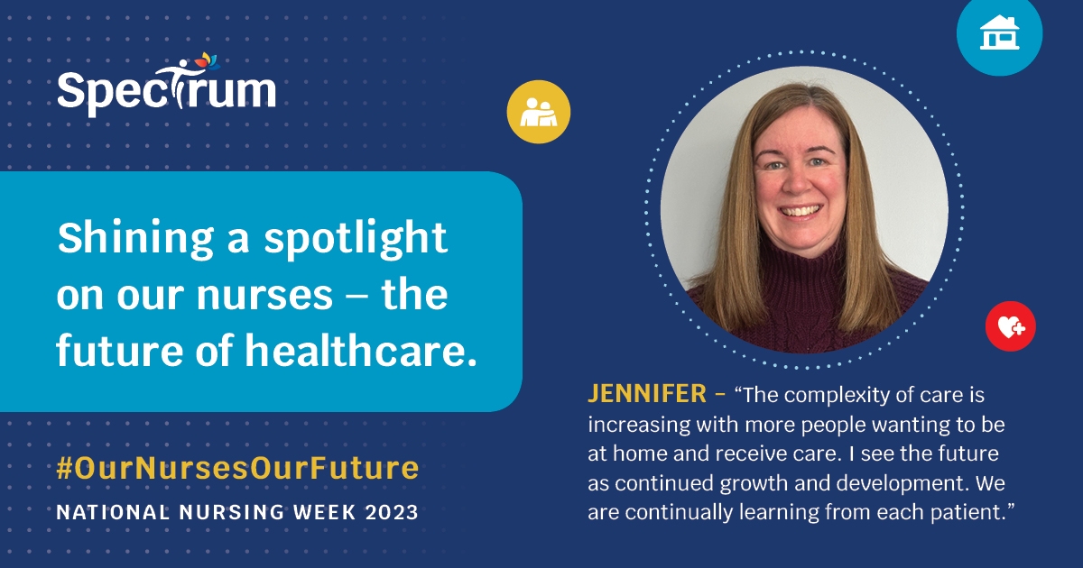 Spectrum nurses are committed to delivering quality care to our patients. They offer empathetic assistance to vulnerable people every day, whether by aiding patients in their transition from hospital to home, administering crucial wound care, attending to patients in nursing clinics or providing palliative care.